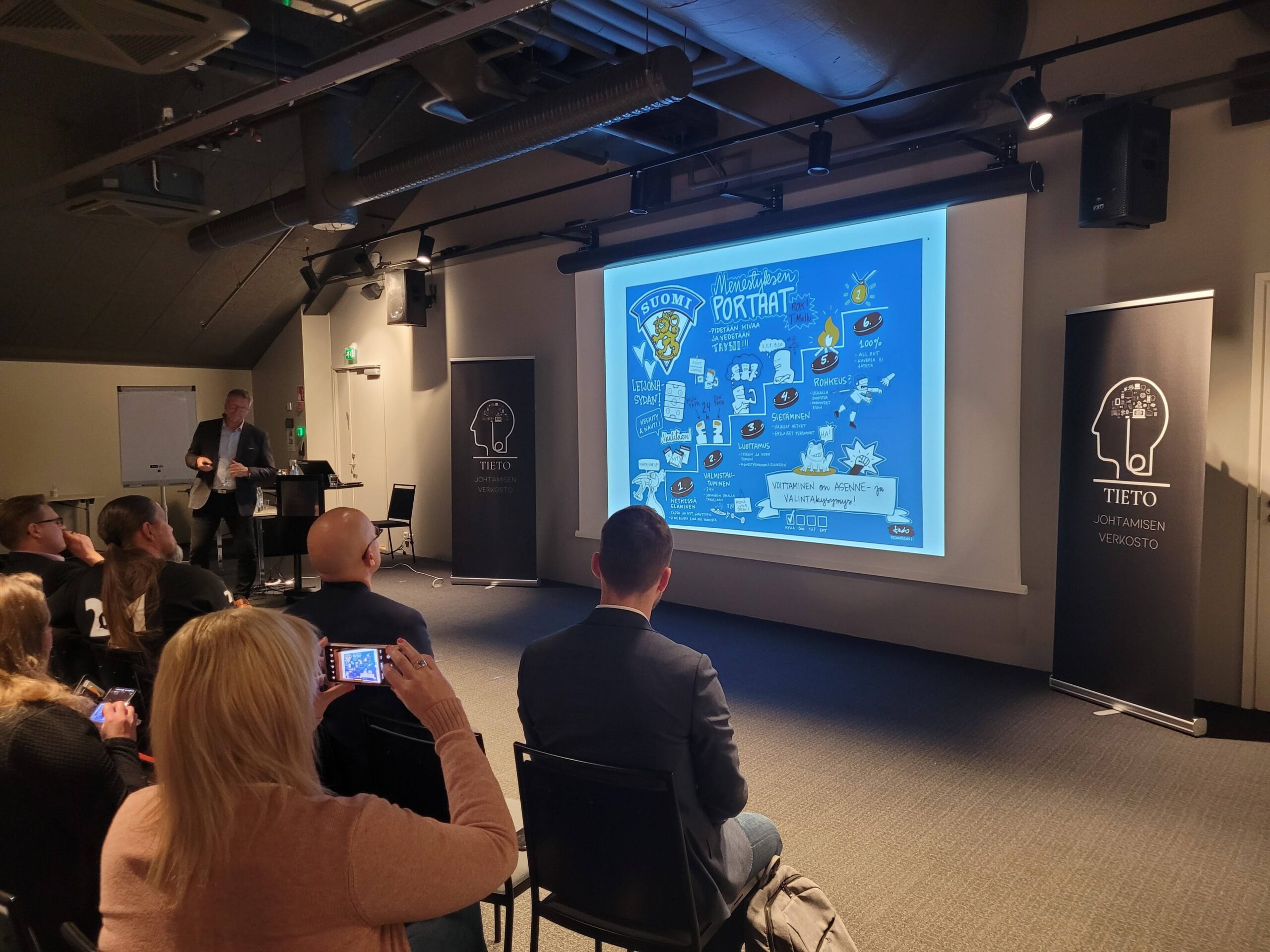 Jukka Jalosen esityksestä selvisi, ettei Suomen maajoukkueessakaan pärjätä ilman tietoa, taitoa ja kokemusta mallintaa ja toteuttaa menestys ja siihen liittyvä tarina yhä uudelleen ja uudelleen tapahtuvaksi. Tämän taustalla ovat joukkueen yhdessä muodostetut käytännön arvot. Tästä aasinsiltana, näen verkoston jäsenillä ja verkostopäivien osallistujilla tulevaisuuteen katsovan velvollisuuden, olla jatkuvasti muuttuvassa maailmassa yhteisesti tietoisia siitä, millaisia käytännön arvoja edustavalle organisaatiolle me tietoa jalostamme ja tuotamme sekä millainen tieto sitä ekosysteemiä parhaiten tukee. Organisaation tavoitetta tukeva kulttuuri, tiedostamaton tai tiedostettu, saa alkunsa yksittäisten tiimien tai ryhmien flowsta ja siitä syntyvästä itseä vahvistavasta positiivisesta muutoksesta, jota tiedolla tuetaan.